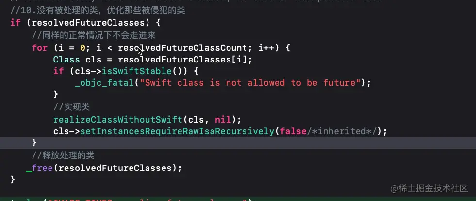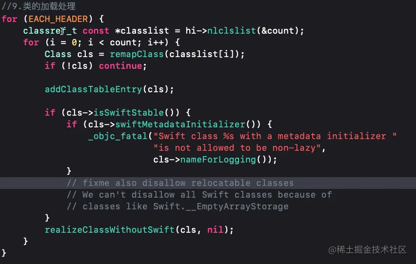 通过_getObjc2SelectorRefs拿到MachO中的静态段__objc_selrefs,遍历列表调用sel_registerNameNoLock将SEL添加到namedSelectors哈希表 - 错误混乱的类处理