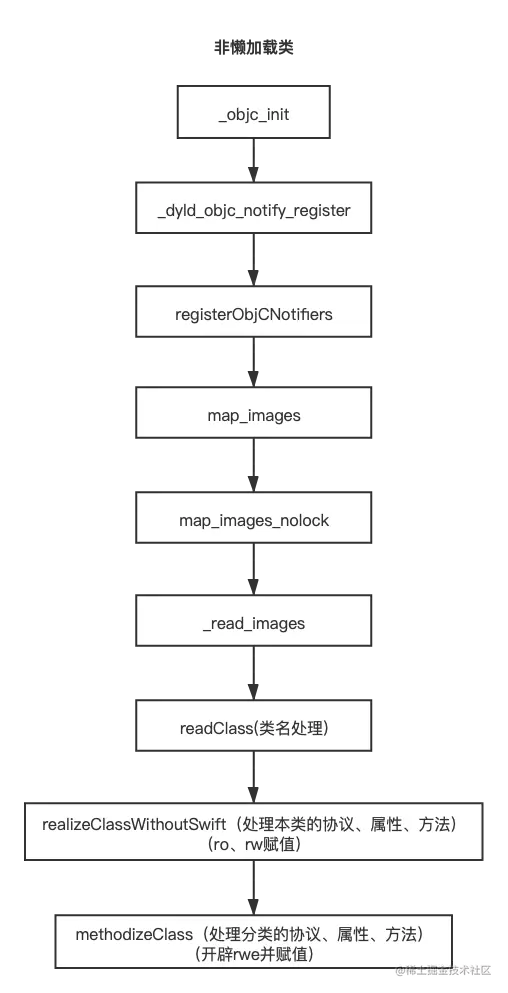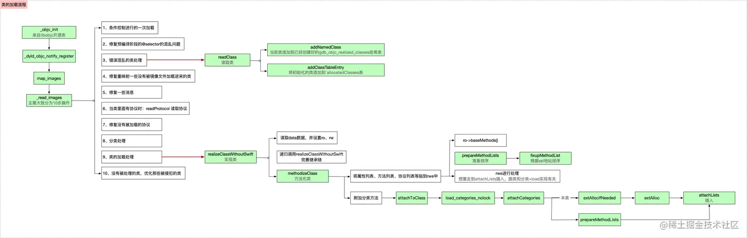 作用就是将Mach-O中的类读取到内存,即插入表中,但是目前的类仅有两个信息:地址以及名称,而mach-O的其中的data数据还未读取出来- 类的加载处理详细解读(上文第9步)