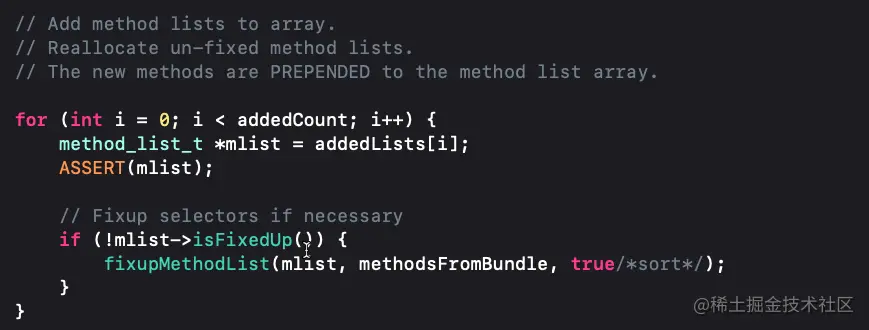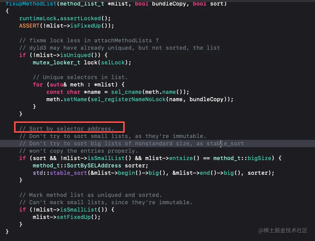 fixupMethodList方法,再看fixupMethodList方法源码发现是通过sel的地址来排序的