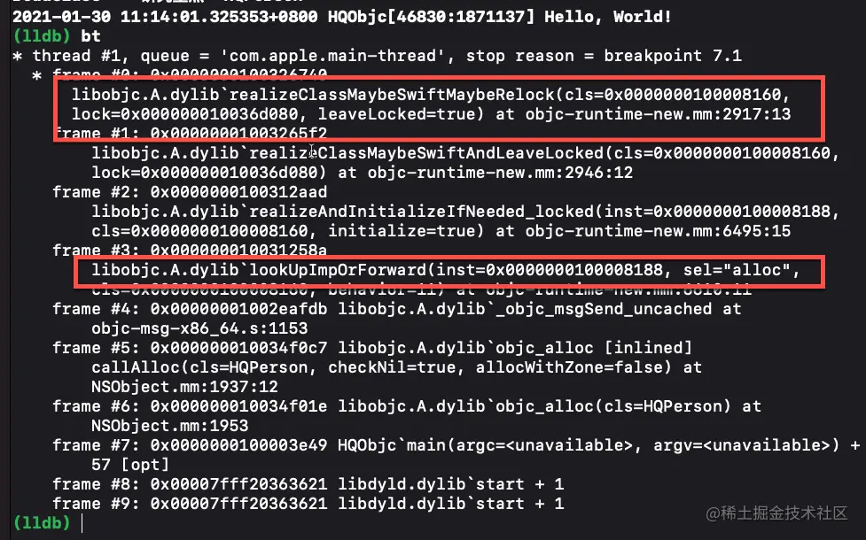 通过打印堆栈信息可以知道如果是懒加载类会在第一次发送消息的时候实现类