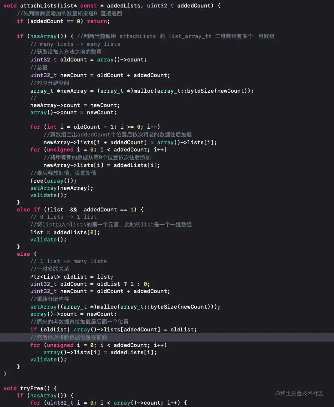 prepareMethodLists方法的主要作用是对方法进行排序,应为调用函数在查找方法的时候是二分查找的所以说sel-imp是有排序的,具体prepareMethodLists如何排序,再看源码发现调用了