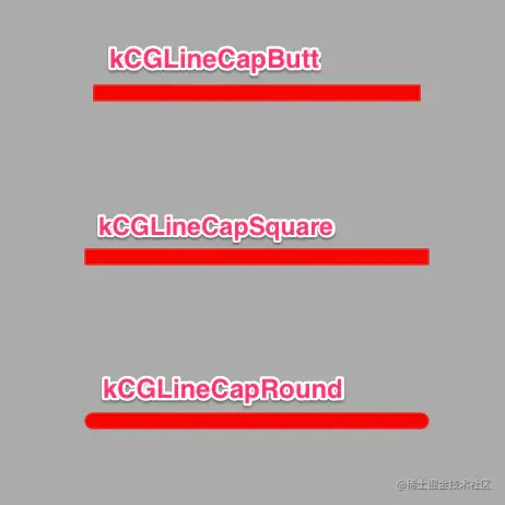 UIBezierPath Silence_xl 2021-01-30 113 阅读1分钟 lineCapStyle:path端点样式,有3种样式 kCGLineCapButt:无端点 kCGLineCapRound:圆形端点 kCGLineCapSquare:方形端点(样式上和kCGLineCapButt是一样的,但是比kCGLineCapButt长一点) lineJoinStyle:拐角样式 kCGLineJoinMiter:尖角 kCGLineJoinRound:圆角 kCGLineJoinBevel:缺角