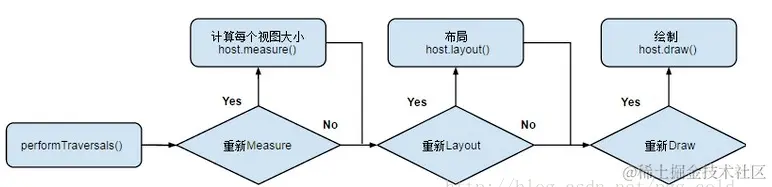 一定要记住:无论是measure过程、layout过程还是draw过程,永远都是从View树的根节点开始测量或计算(即从树的顶端开始),一层一层、一个分支一个分支地进行(即树形递归),最终计算整个View树中各个View,最终确定整个View树的相关属性。