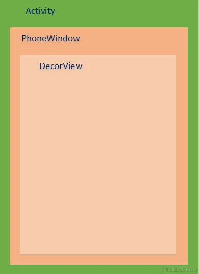 - DecorView是PhoneWindow中的起始节点View,继承于View类,作为整个视图容器来使用。用于设置窗口属性。它本质上是一个FrameLayout