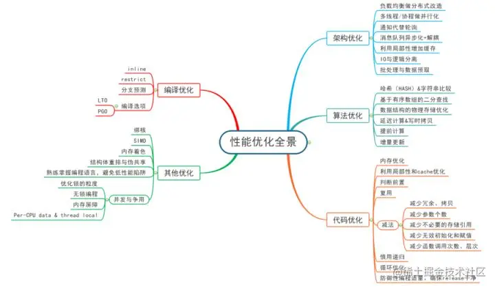 性能优化可分为宏观和微观两个层面。宏观层面包括架构重构,而微观层面,则包括算法的优化,编译优化,工具分析,高性能编码等,这些方法是有可能独立于具体业务逻辑,因而有更加广泛的适应性,且更易于实施。