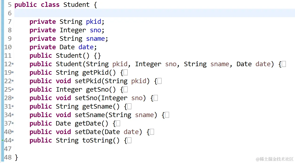 以Student为例,属性、构造器、set/get、toString......