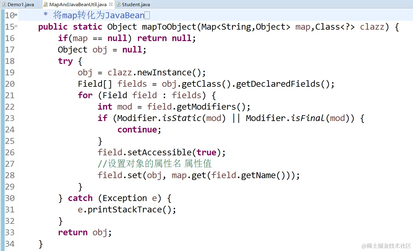 利用反射进行Map和JavaBean间转换