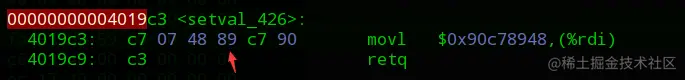 然后寻找mov语句, movl %eax, %edi 的机器码是 89 c7 (cookie只有四个字节), 找到一个结果如下: