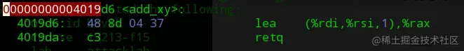 d6 19 40 00 00 00 00 00 /* rax = rdi + rsi */