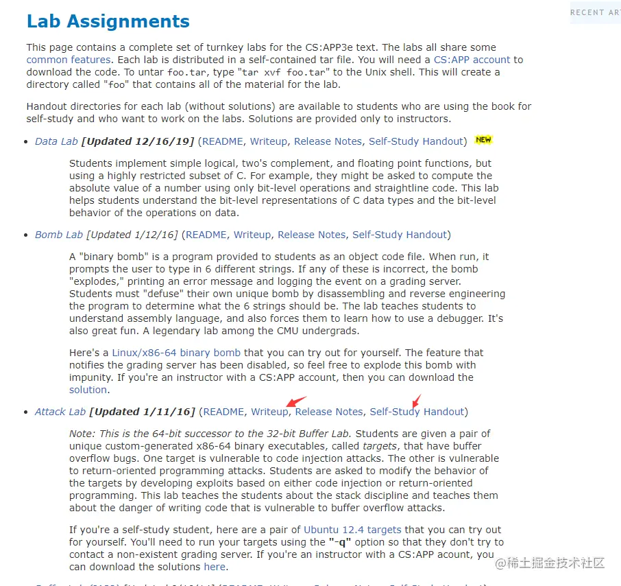 文件的资料都可以在csapp的官网上找到,csapp.cs.cmu.edu/3e/labs.htm…, 打开后是这个样子: