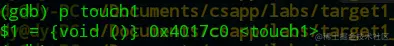 先找到touch1的地址,可以在gdb中直接p touch1, 然后得到地址: