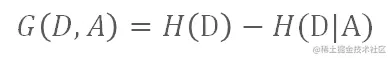 如目标变量D的信息熵为 H(D),而D在特征A条件下的条件熵为 H(D|A),那么信息增益 G(D , A) 为: