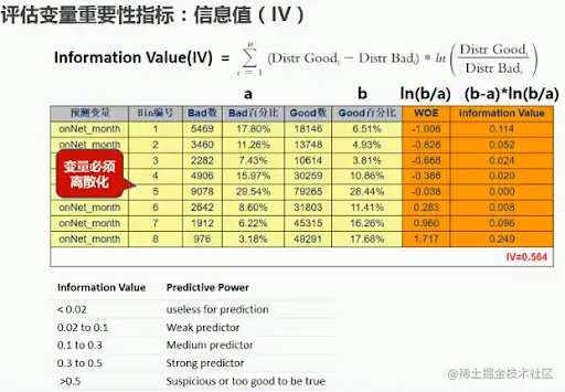 IV值(Information Value),在风控领域是一个重要的信息量指标,衡量了某个特征(连续型变量需要先离散化)对目标变量的影响程度。其基本思想是根据该特征所命中黑白样本的比率与总黑白样本的比率,来对比和计算其关联程度。【Github代码链接】