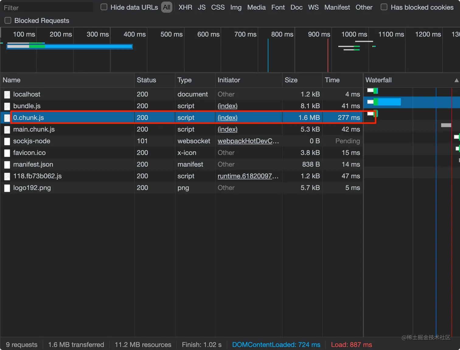 由上可以看到0.chuk.js这个包的体积减去了部分,不仅减少了很多dev启动编译的时间,也在后续打包中减少打包体积!