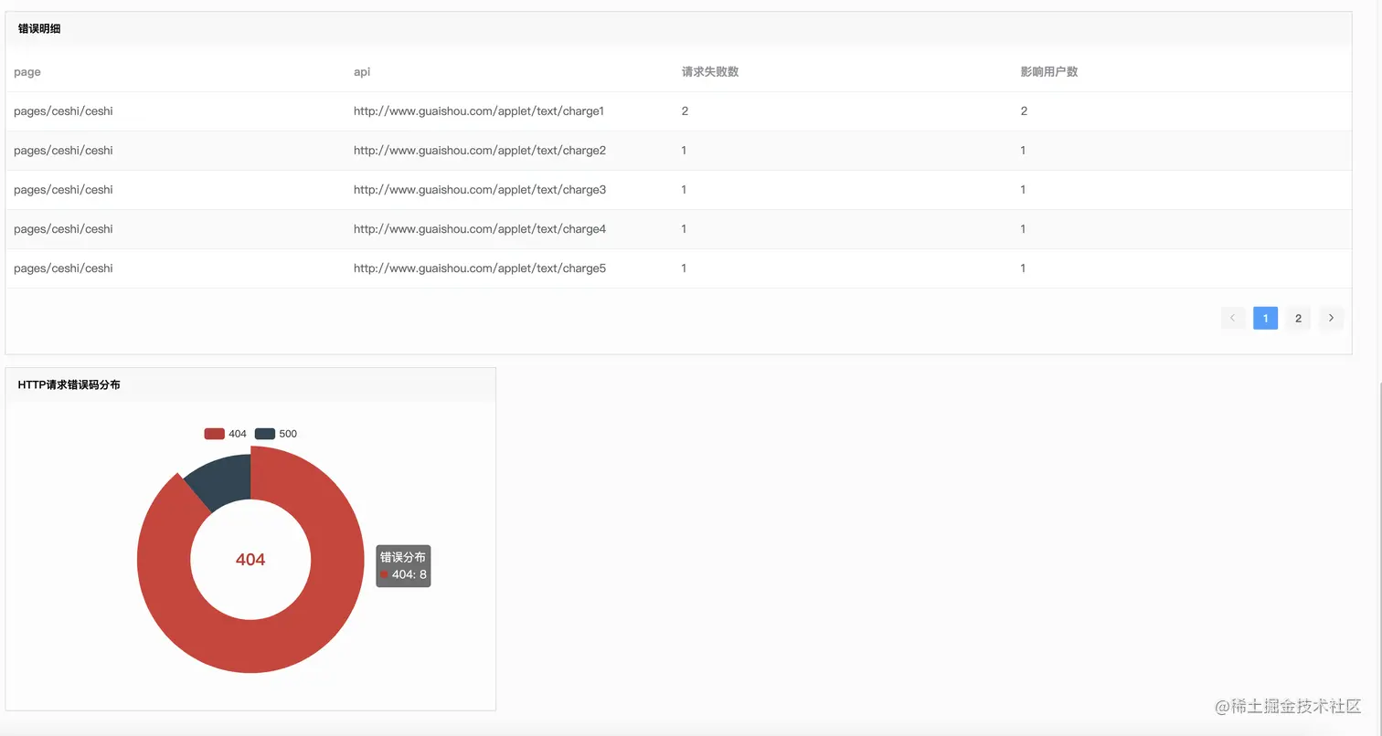 当然Page 页面首页pv和收集错误是一样的,这边不一一贴代码了