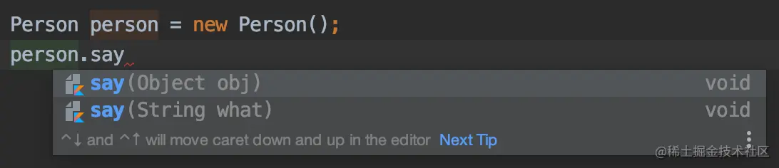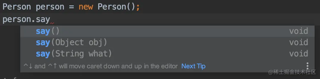 ok,这下 Java 中就识别到了不带参数的 say()方法了