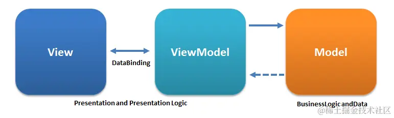 Model-View-ViewModel:the model, the view, and the view model = model–view–binder