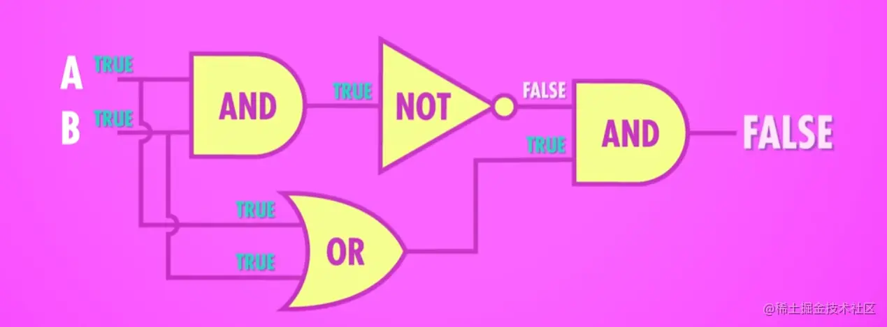 那么想必你也知道,电路中有电流流过,我们就把它认为是“1”,也可以表示为 “true”,电路中没有电流流过,我们就把它认为是“0”,也可以表示为 “false”,那么该如何来表示和计算呢?在数学领域,有一整个数学分支,专门处理“真”和“假”,而且它已经解决了所有法则和运算,称为“布尔代数”(Boolean Algebra)!与常规的计算不同,布尔代数的运算并不是加减法,而是逻辑运算,其中有三个基本的逻辑运算:NOT 、AND 和 OR。