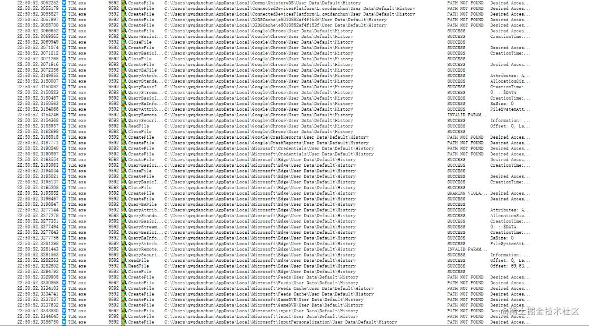 果然看到了读取AppData\Local\Google\Chrome\User Data\Default\History等目录的操作。