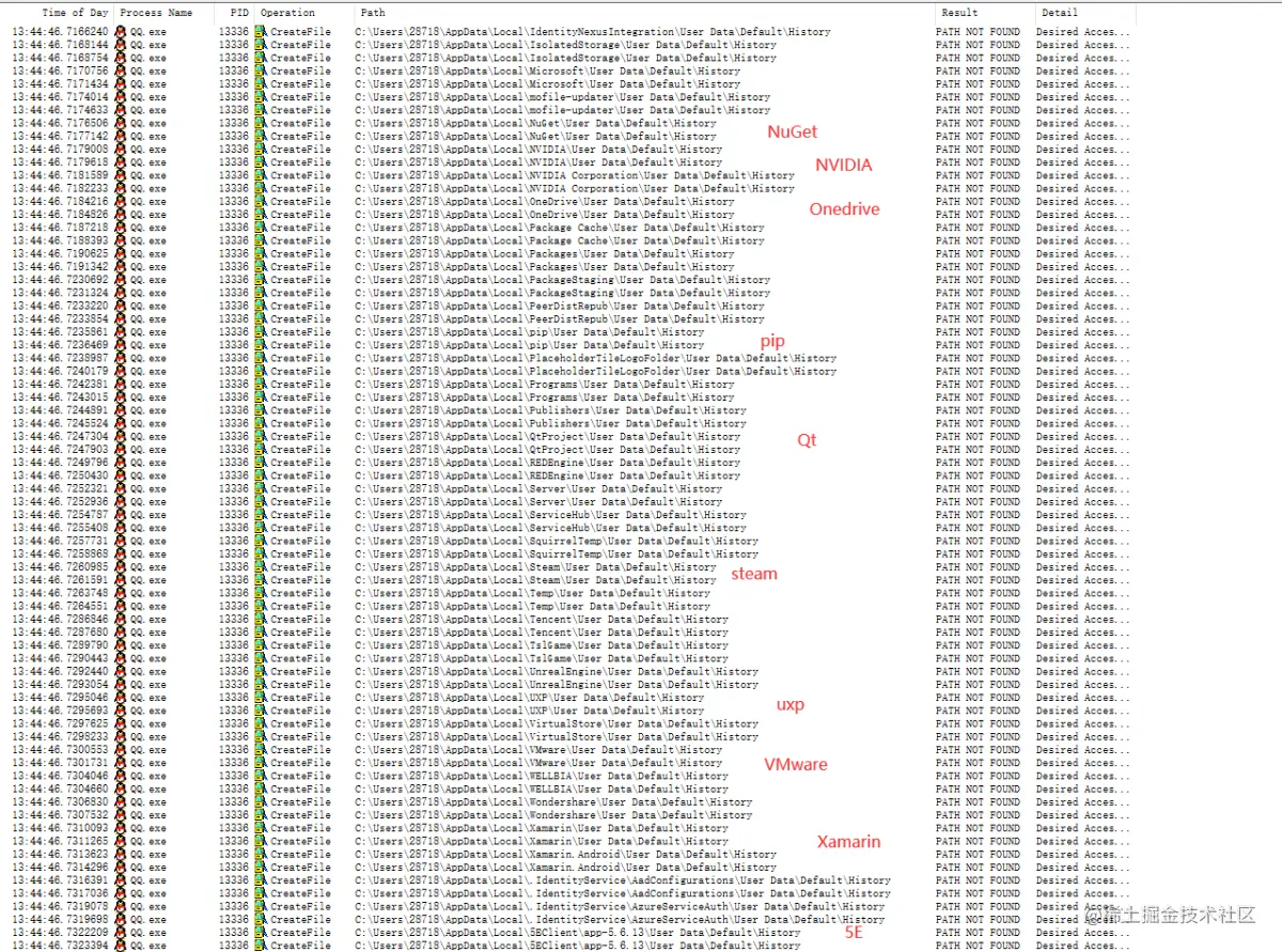 这我就想去验证下了,开虚拟机装QQ、Chrome,然后打开Process Monitor开始等。规则简单的过滤下。