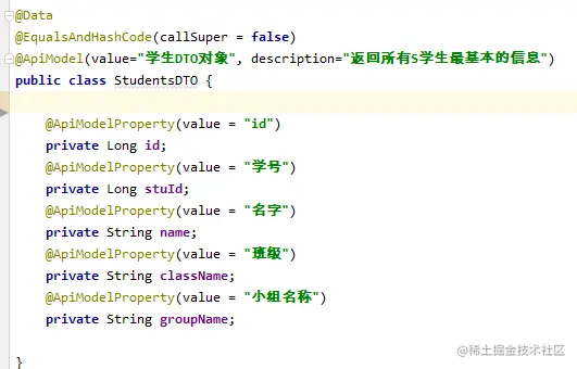 @ApiModel(value="学生DTO对象", description="返回所有S学生最基本的信息") 作用在模型上,介绍当前模型
