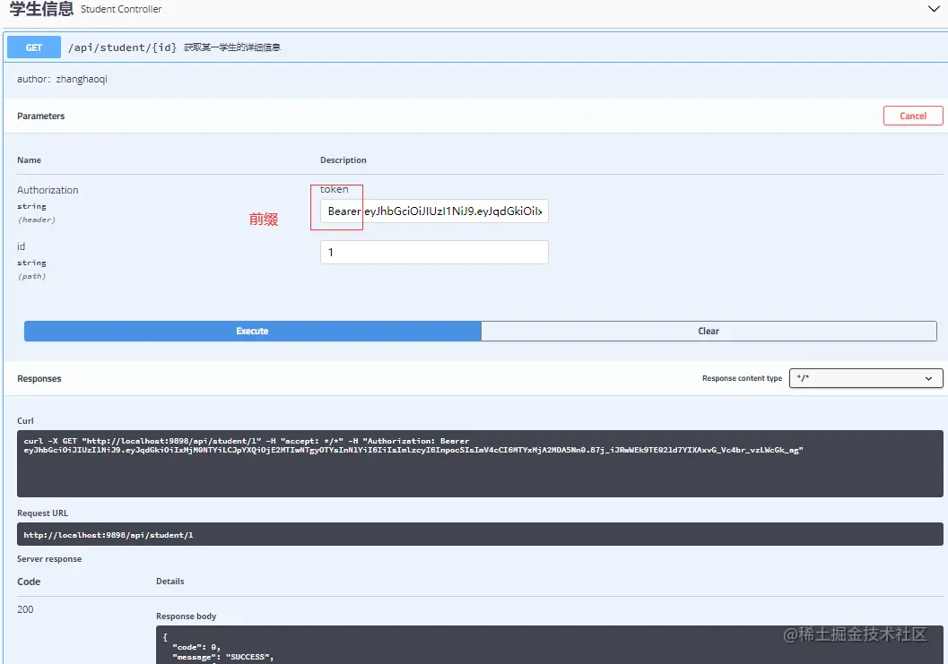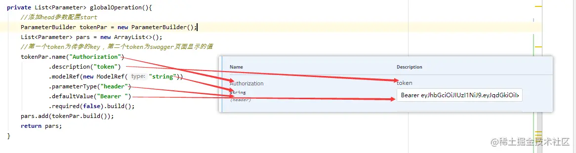 //第一个token为传参的key,第二个token为swagger页面显示的值