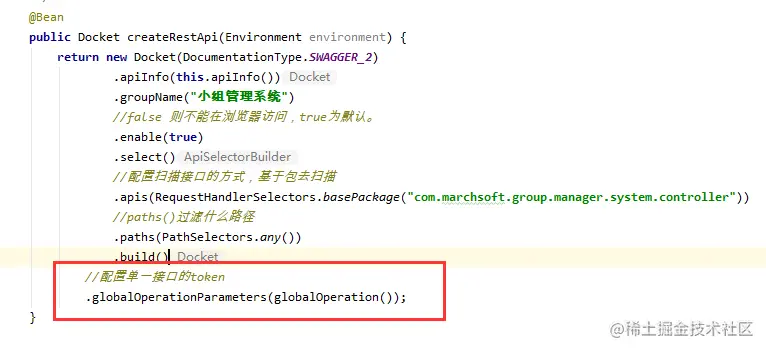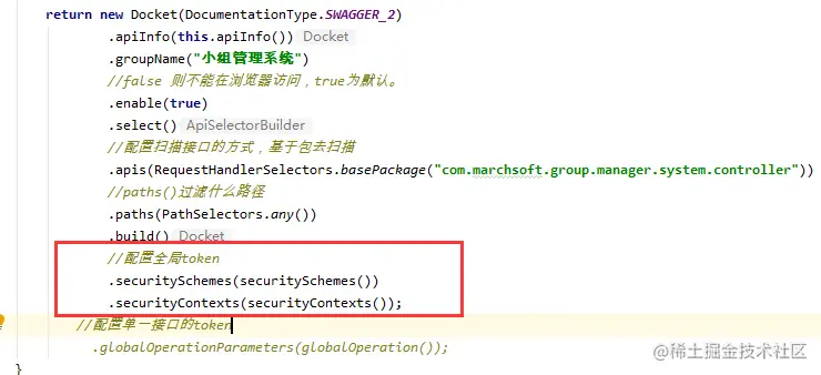 调用Docket的globalOperationParameters()方法,并传入token基本配置信息