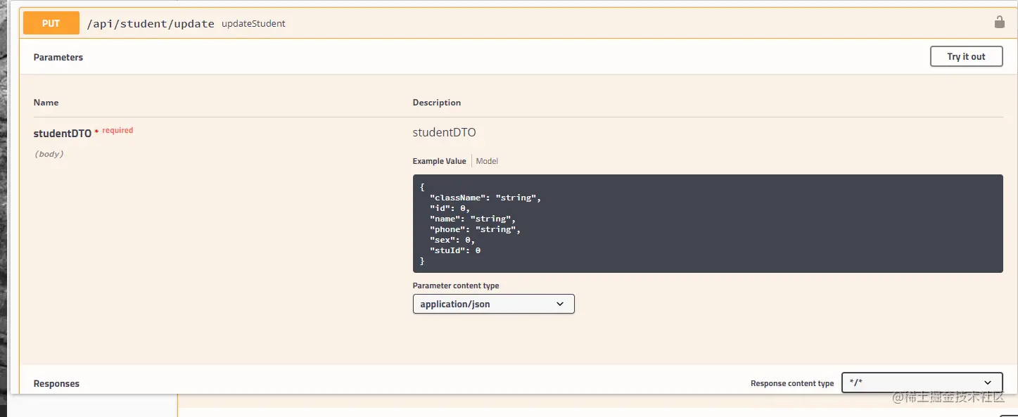 - swagger也为我们提供了相应,我们可以在dev和test环境下测试,pro环境下不能进行测试。