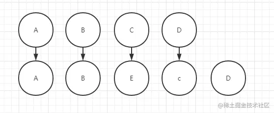 假如没有使用key情况,首先我们去daptch A的时候会走进else if (sameVnode(oldStartVnode, newStartVnode)) { // 老的开头节点与新的开头节点比较