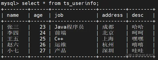 select * from ts_userinfo