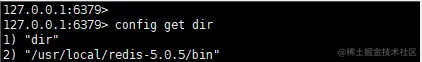rdb文件生成目录。默认是./(当前目录),可以执行命令config get dir进行查看,如下图所示说明当前dump文件生成目录为 /usr/local/redis-5.0.5/bin: