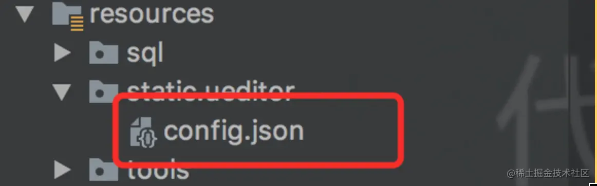1.后端加载百度富文本编辑器的配置文件congfig.json,本项目放在resources下的static.ueditor下