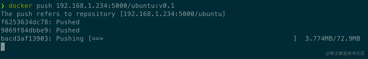 docker push 192.168.1.234:5000/ubuntu:v0.1