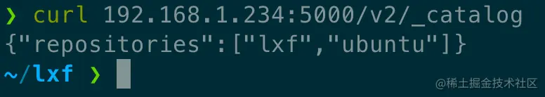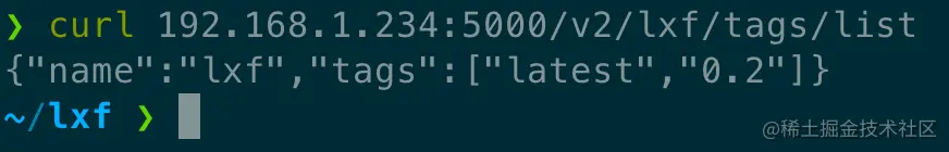 curl 192.168.1.234:5000/v2/lxf/tags/list