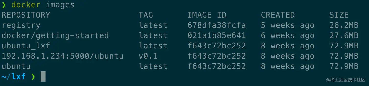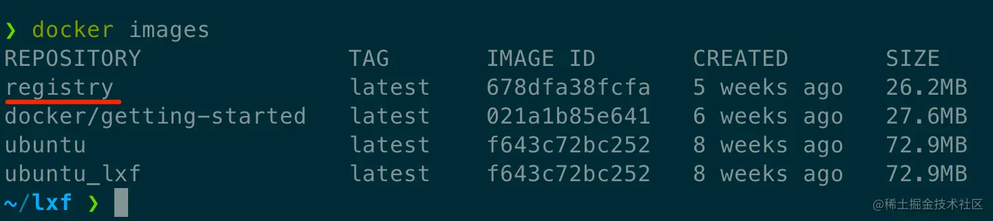 查找指定标签的镜像的 digest ,再根据这个 digest 来删除,以删除 lxf:0.2 镜像为例