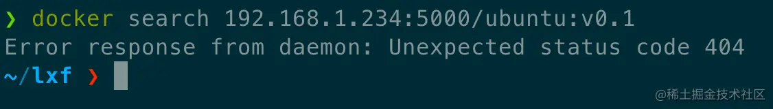 Registry 不支持通过 docker search 这种方式去搜索镜像,会报 404 的错误