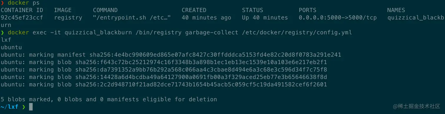 docker exec -it registry的容器名 /bin/registry garbage-collect /etc/docker/registry/config.yml