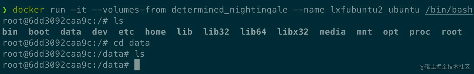 docker run -it --volumes-from determined_nightingale --name lxfubuntu2 ubuntu /bin/bash