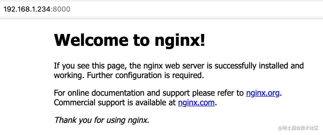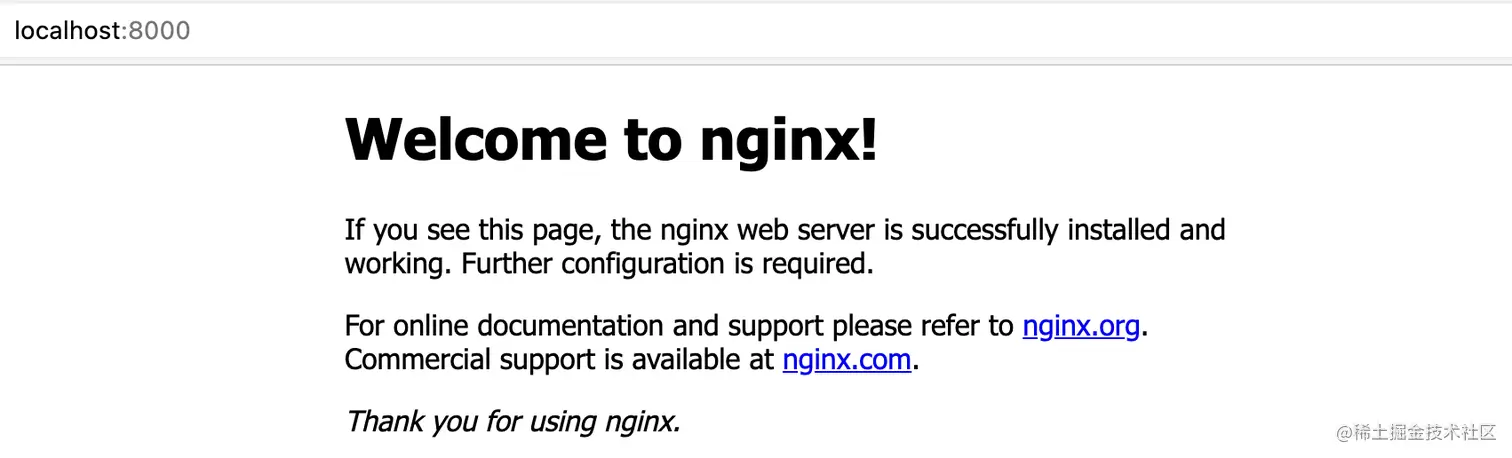 将宿主机上的 8000 端口映射到 nginx 容器的 80 端口