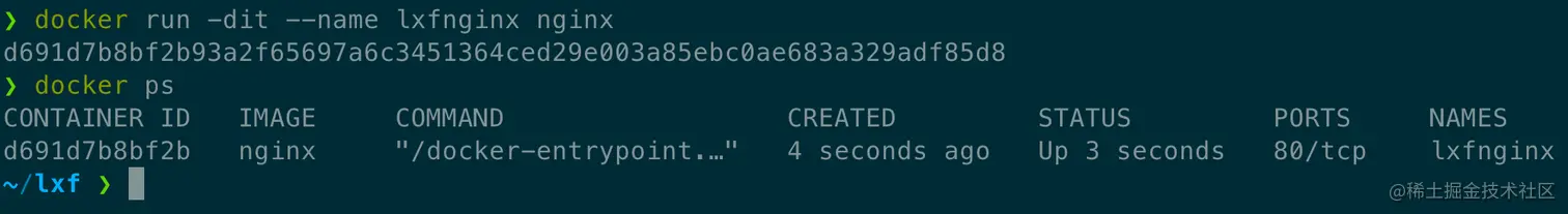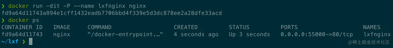 docker run -dit -P --name lxfnginx nginx