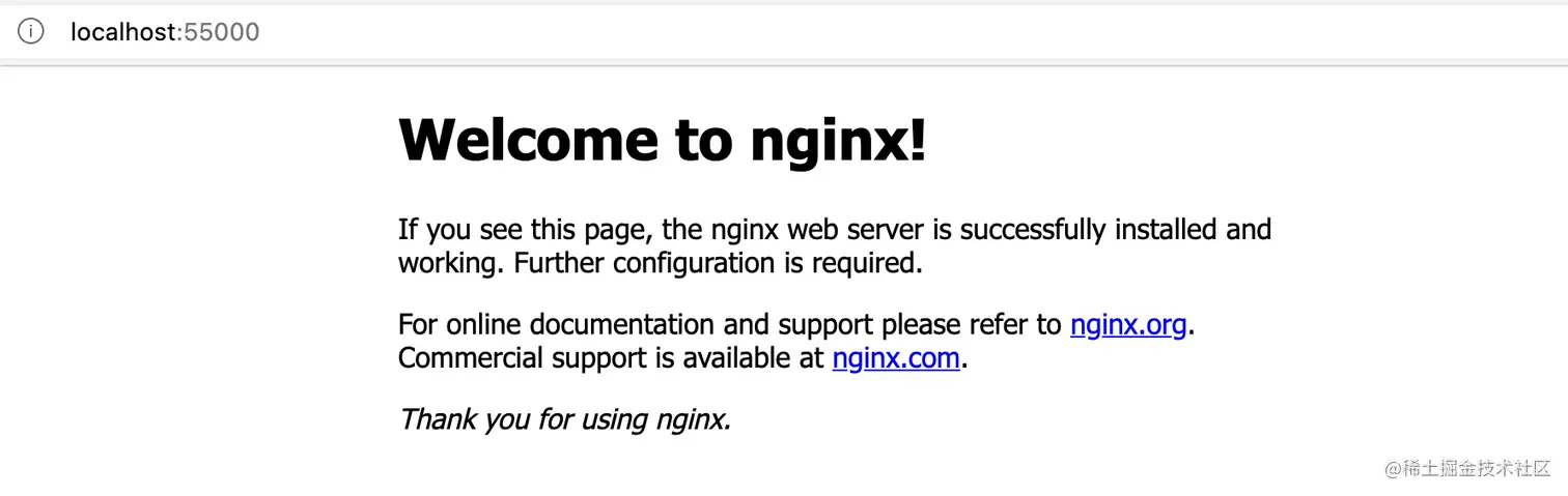 55000 端口就映射到了窗口的 80 端口,访问也是成功的。
