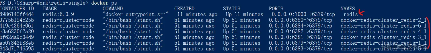 8986142ff4d4 redis:6.0.9 "docker-entrypoint.s…" 11 minutes ago Up 11 minutes 0.0.0.0:7000->6379/tcp redis