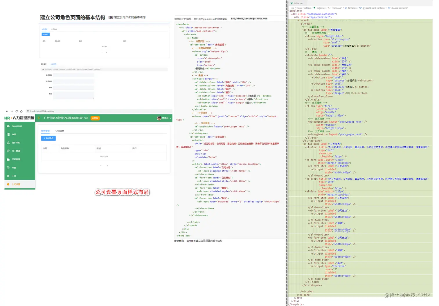 1.建立公司角色页面的基本结构2.1读取角色列表数据2.2读取公司信息数据3.删除角色功能4.1封装编辑接口,新建编辑弹层4.2实现编辑功能,为新增功能留口5.新增角色功能1.1通用工具栏的组件结构1.2组件统一注册2.员工列表页面的基本布局和结构3.员工列表数据请求和分页加载4.1利用列格式化属性处理聘用形式4.2过滤器解决时间格式的处理5.删除员工功能6.1新建员工弹层组件6.2引用弹出层,点击弹出6.3新增员工的表单校验6.4加载部门数据转化树形6.5点击部门赋值表单数据7.新增员工功能-确定-取消8.员工导入组件封装9.1建立公共导入的页面路由 ------- 未完待续 !········9.2分析excel导入代码,封装接口9.3实现excel导入9.4excel导入的时间问题10.1安装excel所需依赖和按需加载10.2excel导出参数的介绍10.3excel导出基本的结构10.4导出时间格式的处理10.5复杂表头的导出11.1详情页的基本布局和路由11.2读取和保存用户信息的接口11.3实现用户名和密码的修改12.1封装个人详情组件12.2封装岗位组件13.1读取个人保存个人信息13.2读取保存岗位信息14.配置腾讯云Cos15.封装上传图片组件-上传组件需求分析16.1新建文件上传组件16.2点击图片进行预览16.3根据上传数量控制上传按钮16.4删除图片和添加图片16.5上传之前检查16.6上传动作调用上传腾讯云16.7上传成功之后处理返回数据16.8上传的进度条显示17.1将员工的头像和证件照赋值给上传组件17.2保存时处理头像和证件照的保存18.员工列表显示图片19.图片地址生成二维码20.1新建打印页面及路由20.2利用vue-print-nb进行打印1.权限设计-RBAC的权限设计思想2.1新建分配角色窗体2.2获取角色列表和当前用户角色2.3给员工分配角色3.1新建权限点管理页面3.2获取权限数据并转化树形3.3新增编辑权限的弹层3.4新增,编辑,删除权限点4.1新建分配权限弹出层14.1新建分配权限弹出层24.2给角色分配权限5.1权限受控的主体思路5.2新建Vuex中管理权限的模块5.3Vuex筛选权限路由5.4权限拦截出调用筛选权限Action5.5静态路由动态路由解除合并6. 登出时,重置路由权限和 404问题7.1功能权限的受控思路7.2使用Mixin技术将检查方法注入1.全模块集成1.首页的页面结构2.首页用户资料显示3.1新建工作日历组件结构3.2实现工作日历逻辑4.1了解雷达图4.2封装雷达图插件5.审批流程业务的基本介绍6.提交一个离职审批-弹层6.提交一个离职审批-调用接口1.全屏插件的引用2.动态主题的设置3.1初始化多语言包3.1初始化多语言包-23.2引入自定义语言包3.3在左侧菜单中应用多语言包3.4封装多语言插件4.tab页的视图引入1.打包之前的路由模式2.1性能分析2.2webpack排除打包2.3CDN文件配置2.4注入CDN文件到模板3.1使用koa框架部署项目3.2解决history页面访问问题3.3解决生产环境跨域问题