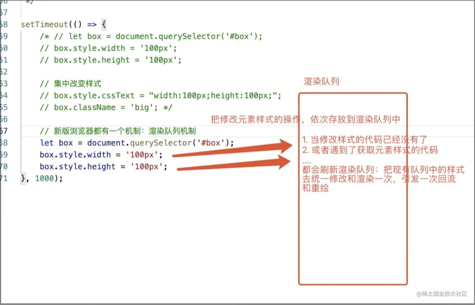 box.style.height = '100px'; //这里执行完,下面没有修改样式的代码了 ,也会触发刷新渲染队列