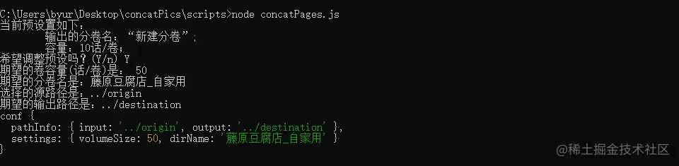 首先是明确了功能是在不改变源目录中文件顺序的情况下将多个目录按文件名顺序合并到新目录,以这样的方式手动制作分卷。由于涉及到复制文件、创建目录,所以核心功能需要通过fs模块来完成;如果是自己用的话,一些比如输入输出目录这种配置参数,大可直接写死在代码里,需要用的时候再改就是了,但为了提高灵活性吧,所以我希望能像其他的CLI工具一样,通过用户输入来决定配置,这需要用到readline模块来获取用户在命令行中的输入(这里会比py麻烦点,py一个input方法就可以获取用户在命令行里的输入了)