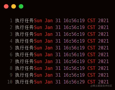说明: 连续执行 10 次任务,每个任务执行时间为 10s
