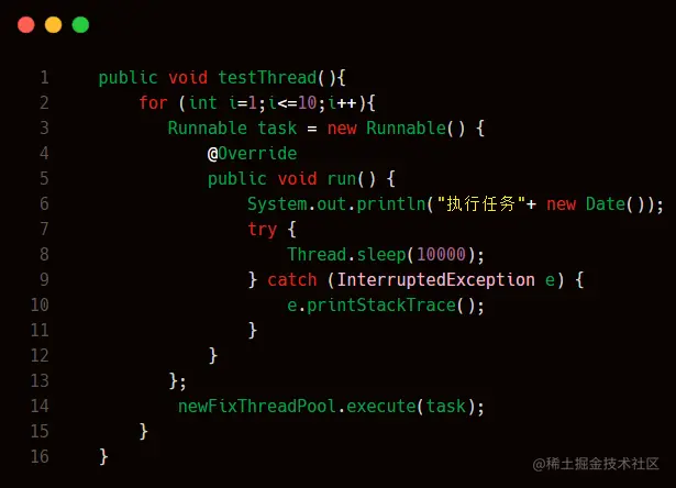 - DiscardPolicy:直接丢弃任务。 我们也可以根据实际的应用场景实现 RejectedExecutionHandler 接口,自定义饱和策略,如记录日志或持久化存储不能处理的任务。