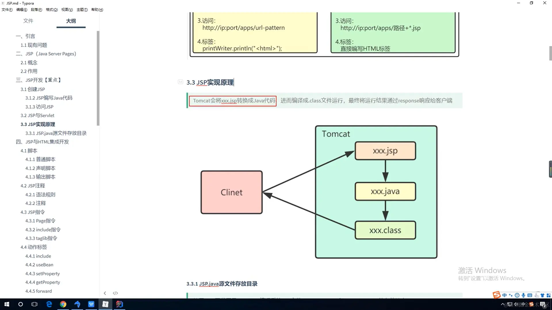 Tomcat会将xxx.jsp转换成java代码,进而编译成.class文件,最终将运行结果通过response响应给客户端