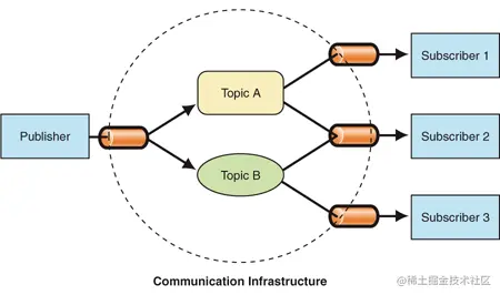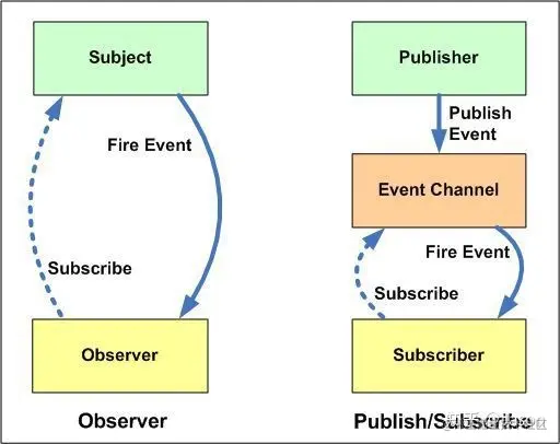在发布订阅模式里,发布者,并不会直接通知订阅者,换句话说,发布者和订阅者,彼此互不相识。那他们之间如何交流?答案是,通过第三者触发,也就是在消息队列里面,发布者和订阅者通过事件名来联系,匹配上后直接执行对应订阅者的方法即可。如图: