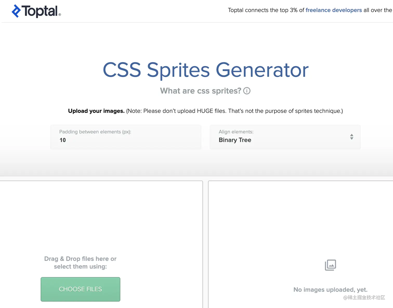 雪碧图的作用就是减少请求数,而且多张图片合在一起后的体积会少于多张图片的体积总和,这也是比较通用的图片压缩方案,推荐一款雪碧图生成工具